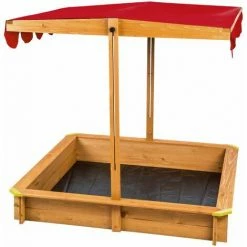TECTAKE Sandkasten Mit Verstellbarem Dach 120x120x120cm – Sandkiste, Buddelkasten, Holzsandkasten – Rot