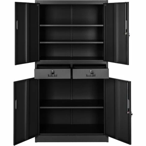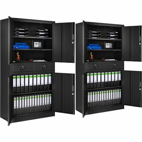 Bringe Ordnung in Dein Archiv. Mit dem abschließbaren Aktenschrank von tectake bewahrst Du Akten und wichtige Unterlagen übersichtlich und sicher auf. Unsere Büroschränke sind für unterschiedliche Einsatzbereiche wie Werkstatt, Lager, und Betrieb sowie für Büro, Keller oder Archiv bestens geeignet. Sie überzeugen durch eine solide Verarbeitung und eine langlebige Stahlblechkonstruktion. Neben den zwei Schrankteilen mit 2 bzw. 3 Fächern, die sich ideal zur Aufbewahrung von Aktenordnern eignen, bieten die beiden Schubfächer allerlei Platz für weitere Utensilien. Der Korpus und die durch ein Kastenprofil verstärkten Türen, aus Stahlblech, mit einer langlebigen pulverbeschichteten Einbrennlackierung, sind in einem elegantem Neutralgrau gehalten und lassen sich so einfach und schlicht in jedes Raumkonzept integrieren.