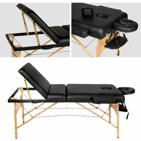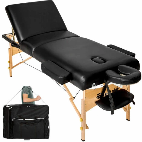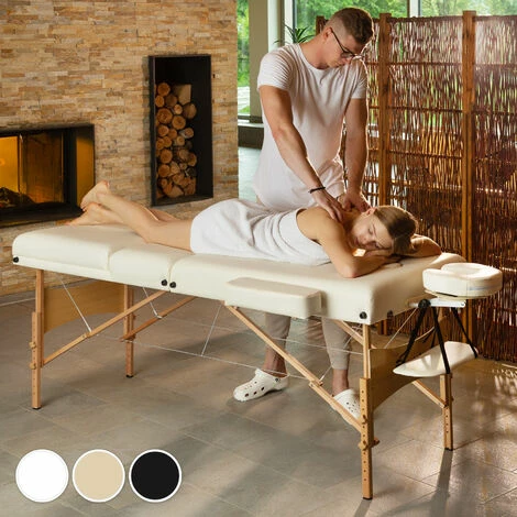 Die luxuriöse und extrem stabile Massageliege mit Holzgestell ist für den lebenslangen Gebrauch ausgelegt. Die Massageliege ist mit einem sehr praktischen Klappsystem ausgestattet und in wenigen Sekunden einsatzbereit! Diese bis ins Detail durchdachte Wellnessliege bietet unübertroffene Stabilität, Sicherheit und Liegekomfort in höchster Qualität (Auflagenhöhe 10,5 cm, reine Polsterung ca. 7,5 cm) und ist zudem durch die praktische Tragetasche (die im Preis inklusive ist) transportabel! Die komfortable Polsterung aus hochwertigem Feinzellenschaumstoff (Oxford 600D very strong) passt sich perfekt der Körperform an, so dass das Gewicht gleichmäßig verteilt wird und Druckpunkte vermieden werden. Der anschmiegsame Vinylbezug unserer Massageliege ist kratz- und schlagfest sowie wasser- und ölresistent. Der König unter den Massageliegen!