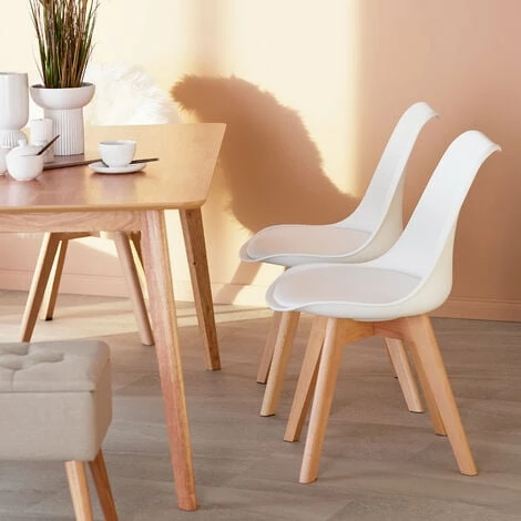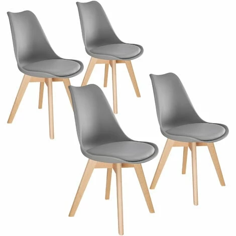 Die vier Esszimmerstühle von tectake bringen skandinavische Gemütlichkeit und Eleganz in Dein Zuhause. Hohen Komfort bieten die anschmiegsame Form der Sitzschale und das weiche Polsterkissen. Das Gestell aus massivem Holz garantiert größte Stabilität und hohe Belastbarkeit, während die Filzgleiter an den Fußenden Geräusche dämpfen und den Boden schonen. Die ansprechende und zugleich unaufdringliche Optik der Stühle eröffnet fast grenzenlose Kombinationsmöglichkeiten – unterstreiche Deinen persönlichen Wohnstil mit diesem vielseitigen 4er-Set von tectake.