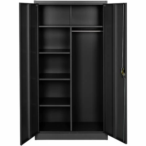 Bringe Ordnung in Dein Archiv. Mit dem abschließbaren Aktenschrank von TecTake bewahrst Du Akten und wichtige Unterlagen übersichtlich und sicher auf. Unsere Qualitäts-Schränke sind für unterschiedliche Einsatzbereiche wie Werkstatt, Lager, und Betrieb sowie für Büro, Keller oder Archiv bestens geeignet. Sie überzeugen durch eine solide Verarbeitung und eine langlebige Stahlblechkonstruktion. Neben den vier kleineren Fächern, die sich ideal zur Aufbewahrung von Aktenordnern eignen, bieten die beiden vertikal und horizontal angeordneten Fächer die Möglichkeit, auch größere Gegenstände zu verstauen. Die integrierte Stange erlaubt das Aufhängen der Kleidung. Der Korpus und die durch ein Kastenprofil verstärkten Türen, aus Stahlblech, mit einer langlebigen pulverbeschichteten Einbrennlackierung, sind in einem elegantem Neutralgrau gehalten und lassen sich so einfach und schlicht in jedes Raumkonzept integrieren.