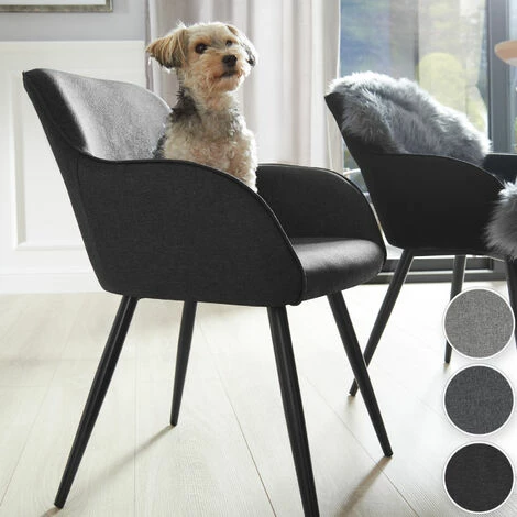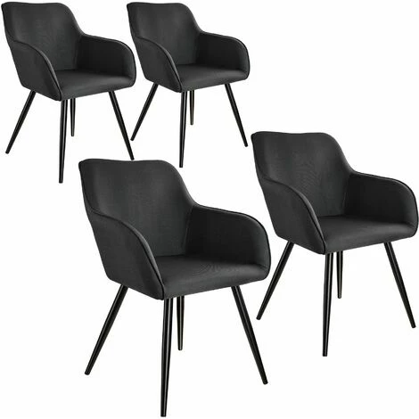 Verleihe Deinem Zuhause eine geschmackvolle Atmosphäre mit dem eleganten Stuhl Marylin in Leinenoptik von tectake. Rückenlehne und Armlehnen sind sanft abgerundet und bilden eine formvollendete Einheit. Die angenehme Polsterung und der weiche Bezug verführen geradezu zum sofortigen Entspannen. Das vierbeinige Rundrohrgestell aus solidem Stahl in Schwarz komplettiert den einladenden Auftritt dieses vielseitigen Stuhls.