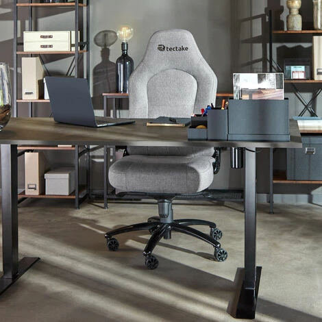 Der vielseitige Bürostuhl Springsteen von tectake bietet Dir optimale Unterstützung mit hohem Wohlfühlfaktor bei Deiner Arbeit. Durch die wegklappbaren Armlehnen, die stufenlose Höhenverstellbarkeit und die einstellbare Wippfunktion inklusive verstellbarem Härtegrad passt sich der flexible Drehstuhl perfekt Deinen Bedürfnissen an. Die üppige Polsterung, der weiche Stoff und die ergonomische Formgebung der Rückenlehne sorgen auch bei langem Sitzen für höchsten Komfort. Dank seines schicken Designs und seiner abgestimmten, dezenten Farbgebung von Stoff und Stahl macht der stabile Schreibtischstuhl in jeder Umgebung eine gute Figur.