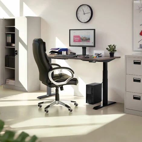 Hol Dir mehr Komfort an Deinen Arbeitsplatz mit dem bequemen und funktionalen Bürostuhl Jonas in Lederoptik von tectake. Die dicke, zweilagige Polsterung und die hohe Rückenlehne vermitteln ein gemütliches und anschmiegsames Sitzgefühl. Durch die spezielle Formgebung, die stufenlos verstellbare Gasdruckfeder und die angenehm breiten Armlehnen findest Du immer die perfekte Position. Die weiche Oberfläche aus Polyurethan überzeugt durch große Strapazierfähigkeit. Das solide Sicherheitsfußkreuz und die bodenschonenden Rollen aus Polyamiden verleihen dem Chefsessel Jonas von tectake hohe Stabilität und Belastbarkeit.
