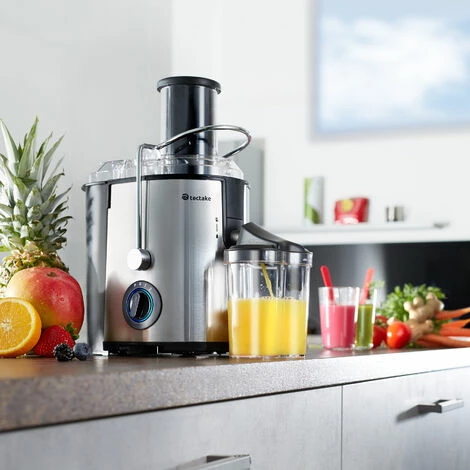 Hol das Beste aus Deinen Früchten raus mit dem effizienten Entsafter von tectake. Dank der großen Einfüllöffnung können viele Obst- und Gemüsesorten direkt in die Maschine gegeben werden. Der präzise Mikrosieb aus Edelstahl garantiert in zwei Geschwindigkeitsstufen feinste Filtrierung und höchste Saftausbeute. Nach Gebrauch lässt sich der praktische Entsafter von tectake bequem auseinanderbauen und einfach mit sauberem Wasser abspülen.