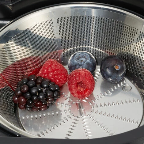- Hohe und feine Saftausbeute durch Mikrosieb aus Edelstahl
