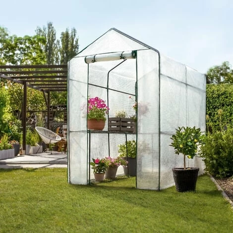 Dieses praktische Gewächshaus eignet sich hervorragend zur Aufzucht von Pflanzen in Deinem Gemüsegarten. Pflanzen doch einfach Dein Gemüse, Obst und Kräuter selbst an. Durch Dein eigenes Treibhaus kannst du durch die erhöhte Erwärmung und erhöhte Luftfeuchte im Innenraum sehr gute Ergebnisse beim Anbau von zum Beispiel Tomatenpflanzen erzielen. Dabei bietet unser Gartenhaus perfekten Schutz vor Wettereinflüssen wie Regen oder zu extremer Sonneneinstrahlung. Die Rahmenkonstruktion aus pulverbeschichtetem Stahl ist stabil und robust. Die strapazierfähige Gewächshausfolie ist aus reißfestem, UV-beständigem PE Material (Polyethylen 135g/m²). Sie ist widerstandsfähig und schützt die Pflanzen vor Frost. Bestelle noch heute dieses praktische Gewächshaus.