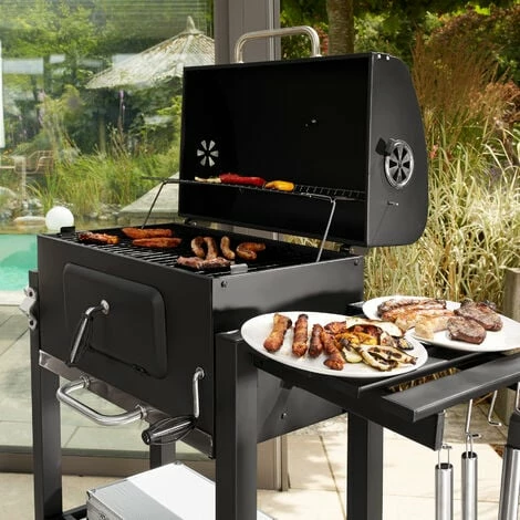 Du möchtest mit einem raffiniertem Holzkohlegrill in die Grillsaison starten? Der professionelle Holzkohle Grill Florian ist eine wirkliche Sensation mit vielen cleveren Zugaben. So macht das Grillen richtig Spaß! Mit dem fest integrierten Flaschenöffner ist auch ein schnelles Bieröffnen garantiert. Die klappbare Seitenablage dient nicht nur als Ablagefläche für Deine Zutaten, sie hat auch noch praktische Haken an der Seite, so ist Deine Grillzange immer griffbereit. Auch den perfekten Garpunkt zu verpassen, ist dank des Thermometers passé. Der Holzkohle Grill hat zudem eine extrem große Hitzefläche. Die Grilltemperatur ist variabel, da die große Holzkohlewanne mittels einer Kurbel höhenverstellbar ist. Unter der Holzkohlewanne befindet sich eine Ascheschublade. Somit ist die Reinigung des Grills wirklich einfach. Weitere Highlights sind die 2 Räder, welche für einen einfachen Transport sorgen und das untere praktische Ablagegitter. Hole Dir noch heute dieses Grillgenie nach Hause.