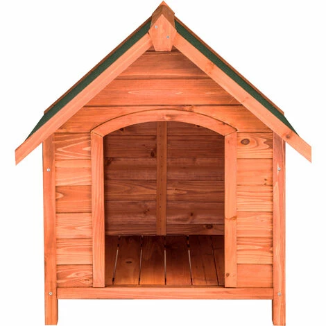 Schaffe mit dieser tollen Hundehütte den optimalen Rückzugsort für Deinen Vierbeiner. Im Winter bei Kälte oder an heißen Tagen im Sommer. In dieser Hütte wird sich Dein Hund rundum wohlfühlen. Die robuste Hütte ist aus lasiertem Holz gefertigt. Das Spitzdach verfügt über eine Bitumenoberfläche und ist somit witterungsbeständig. Damit eine schnelle und einfache Reinigung möglich ist, lässt sich das Dach aufklappen. Der Boden der Hundehütte ist etwas erhöht, was für eine perfekte Luftzirkulation sorgt.