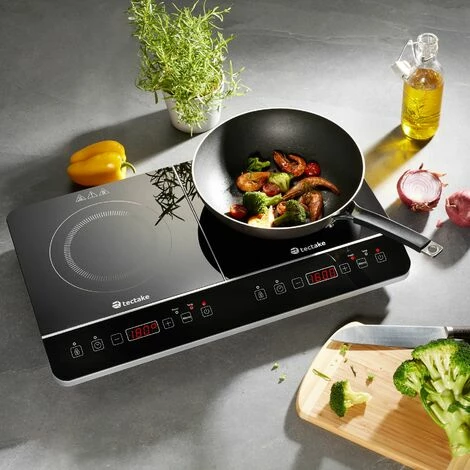 Die tragbare Doppel-Induktionskochplatte von tectake überzeugt mit ihrer schlanken Form und hohen Leistung. Über den benutzerfreundlichen LED-Touchscreen lassen sich die Kochfelder individuell und einfach per Fingerdruck steuern. Durch die hochwertige Bauweise ist der tragbare Küchenhelfer für verschiedene Arten von magnetischem Kochgeschirr geeignet, ob aus Stahl, Gusseisen, emailliertes Gusseisen oder Edelstahl. Die integrierte Kindersicherung und die rutschfesten Füße, kombiniert mit der leichten Reinigung der Oberfläche aus Kristallglas, runden die Vorzüge der Doppel-Induktionskochplatte von tectake als effizienten Küchenhelfer gekonnt ab.