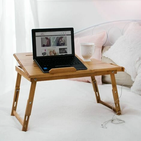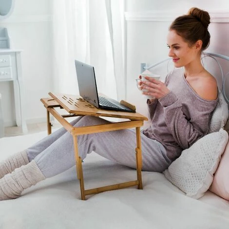 Dieser praktische Laptoptisch von tectake beschert Dir entspanntes Surfen zu Hause oder unterwegs. Die Arbeitsfläche ist kippbar und der komplette Tisch ist höhenverstellbar, damit Du Dir den Tisch individuell auf Deine gewünschte Körperhaltung einrichten kannst. Gefertigt ist unser Laptoptisch aus stabilem und edlem Bambusholz und ist glanzlackiert. Zusätzlich verfügt dieser Computertisch über eine seitliche Schublade, in welcher Du USB-Sticks oder auch Speicherkarten griffbereit aufbewahren kannst. Der Laptoptisch von tectake ist der perfekte Begleiter für gemütliche Tage auf der Couch.