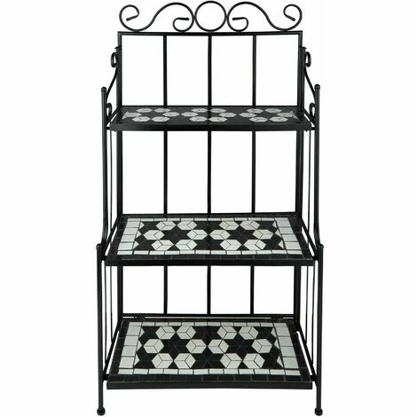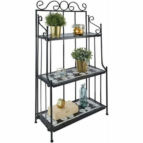 Geschwungener Rahmen, kräftige Farben, stilvolle Muster: Das Metallregal von tectake ist ein Blickfang für Drinnen und Draußen. Ideal als Pflanztreppe für Kräuter und Blumen oder einfach als Ablage. Die soliden Böden mit Klappmechanismus gewährleisten hohe Standfestigkeit. So kann das Mosaikregal auch kiloschwere Lasten mühelos tragen. Die hochkantige Konstruktion bietet viel Raum und benötigt wenig Platz. Daher passt das handliche Regal auch auf viele kleine Balkone oder in weniger breite Flure. Die Montage ist im Handumdrehen erledigt. Schneller Aufbau, anhaltende Wirkung: Das vielseitige Metallregal von tectake.