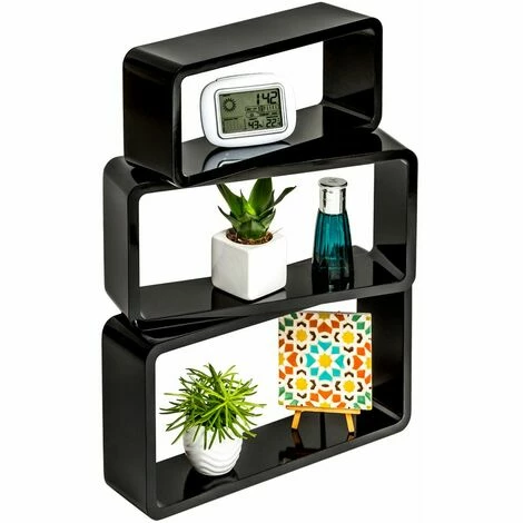 Diese schönen Quader Wandregale im edlen Retrostyle sind ein toller Blickfang für jede Wohnung: Als praktische Aufbewahrungslösung für Bücher, CD’s oder einfach als stylisches Deco-element. Mit dem im Lieferumfang enthaltenen Montagematerial ist das Wandregal Set im Handumdrehen angebracht.