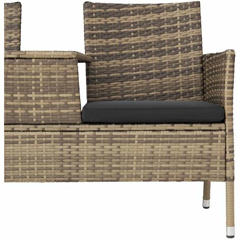 Diese pflegeleichte Polyrattan Gartensitzbank mit seinen gemütlichen Sitzkissen beschert Dir gemütliche Stunden zu zweit in deinem Garten, auf der Terrasse, dem Balkon oder im Wintergarten. Polyrattan eignet sich speziell für die Verwendung im Freien und fügt sich wunderbar ins Gartenbild ein. Die Sitzbezüge sind abziehbar und waschbar. Ein weiteres Highlight dieser schönen Gartenbank ist der integrierte Tisch in der Mitte. Auf der eleganten Glasplatte lassen sich auf praktische Weise deine Drinks, ein Buch oder Sonnencreme abstellen.