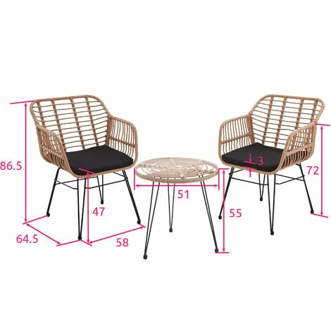 Diese dreiteilige Rattan-Sitzgruppe von tectake besticht durch ihr markantes Design und ihre sommerliche Leichtigkeit. Trotz der schlanken Beine ist das Gestell sehr belastbar und durch die Höhenverstellbarkeit der Füße äußerst standsicher. Aufgrund seiner geringen Ausmaße eignet sich dieses einfach aufzubauende Set auch optimal für kleine Balkone. Die wasserabweisenden Polster sind farblich perfekt auf das Rattangeflecht abgestimmt, wodurch ein harmonisches Gesamtbild entsteht, das sich mühelos in jede Umgebung einfügt.