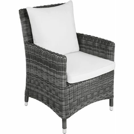 Der elegante Rattanstuhl Sanremo von tectake vereint geschmackvolles Design mit traumhaft weichem Sitzgenuss. Die dicken und flauschigen Kissen sind farblich perfekt auf das Rattanmuster abgestimmt und geben Relaxen eine ganz neue Dimension. Der pflegeleichte Gartensessel mit dem wasserabweisenden Polster und den bodenschonenden Kunststoffkappen wird fertig montiert geliefert. Das feine Geflecht aus strapazierfähigem Polyrattan und das stabile Untergestell aus Aluminium machen diesen edlen Rattansessel von tectake wie geschaffen für den Einsatz im Freien.