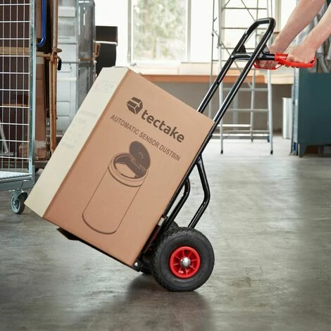 Aufklappen und los geht’s: Mit wenigen Handgriffen ist die flexible Sackkarre bis 100 kg von tectake einsatzbereit. Die robuste Konstruktion mit der großen Ladeschaufel, den stabilen Querstangen und den Sicherheitsgriffen ist ideal geeignet für sperrige und schwere Lasten. Die weichen Luftreifen der Lieferkarre meistern mühelos Schwellen, Bordsteine und andere Hindernisse und schonen empfindliche Böden. Durch das Teleskopgestell und die klappbare Ladeschaufel lässt sich der leichte Handwagen platzsparend verstauen. Kompakt und praktisch: Die vielseitige Sackkarre von tectake.