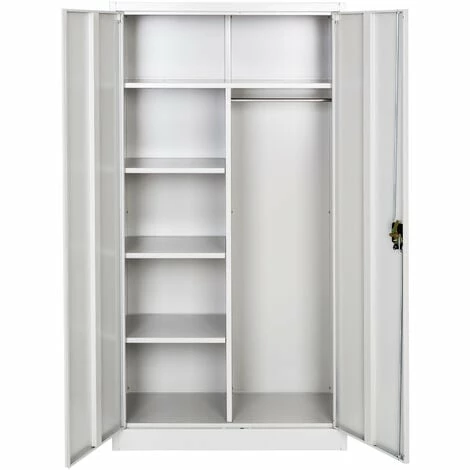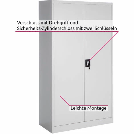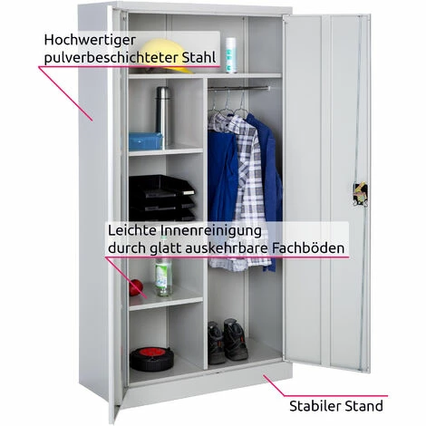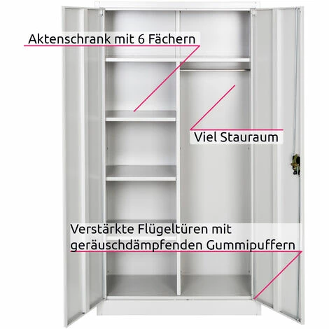 Bringe Ordnung in Dein Archiv. Mit dem abschließbaren Aktenschrank von TecTake bewahrst Du Akten und wichtige Unterlagen übersichtlich und sicher auf. Unsere Qualitäts-Schränke sind für unterschiedliche Einsatzbereiche wie Werkstatt, Lager, und Betrieb sowie für Büro, Keller oder Archiv bestens geeignet. Sie überzeugen durch eine solide Verarbeitung und eine langlebige Stahlblechkonstruktion. Neben den vier kleineren Fächern, die sich ideal zur Aufbewahrung von Aktenordnern eignen, bieten die beiden vertikal und horizontal angeordneten Fächer die Möglichkeit, auch größere Gegenstände zu verstauen. Die integrierte Stange erlaubt das Aufhängen der Kleidung. Der Korpus und die durch ein Kastenprofil verstärkten Türen, aus Stahlblech, mit einer langlebigen pulverbeschichteten Einbrennlackierung lassen sich einfach und schlicht in jedes Raumkonzept integrieren.