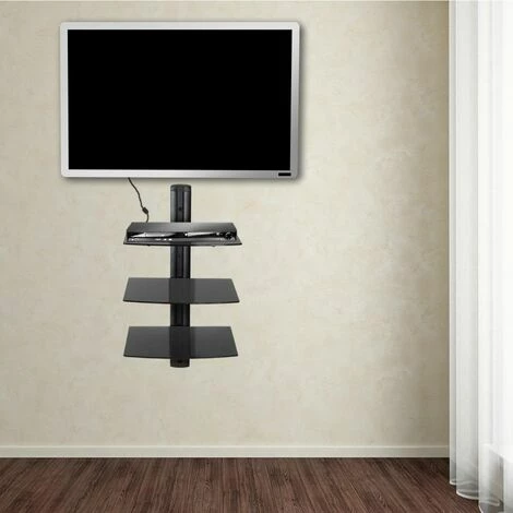 Du suchst eine praktische aber elegante Lösung für Deine Filme, Fernbedienungen, Soundboxen und TV-Entertainment-Geräte? Dann entscheide Dich für das formschöne Wandregal von tectake. Die höhenverstellbare Ablage aus stabilem Sicherheitsglas bietet nicht nur platzsparenden Stauraum, sondern ist ein echter Hingucker im eigenen Wohnzimmer. Dank der integrierten Kabelführung gehören störende Kabel der Vergangenheit an. Die Montage ist schnell und einfach und an jeder Wand möglich. Gestalte Deine TV-Umgebung ganz nach Deinen Vorstellungen mit dem Wandregal von tectake.