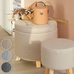 TECTAKE Sitzhocker Elva Gepolstert In Leinenoptik 300kg Mit Stauraum – Sitzhocker Gepolstert In Leinenoptik, Hocker, Möbel – Sand
